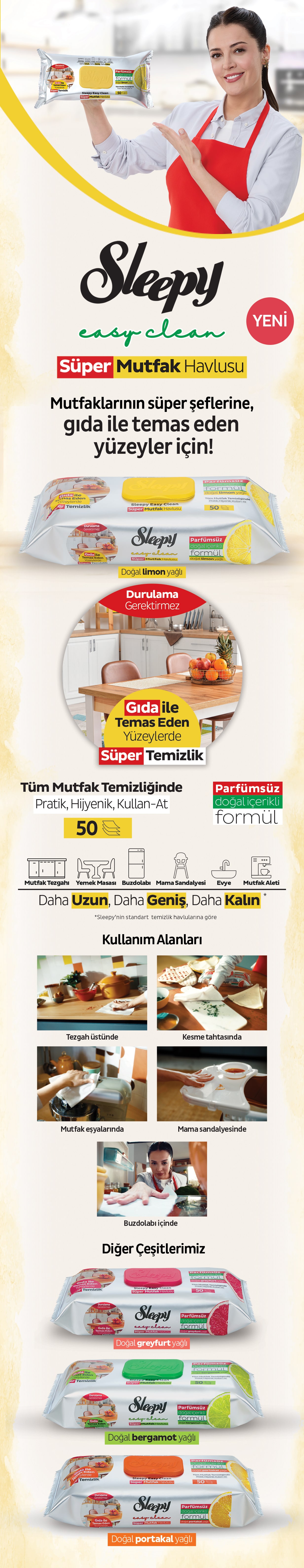 Easy Clean Süper Yüzey Temizlik Mutfak Havlusu&Mendili Limon Yağlı 4X50 (200 Yaprak) 200 Yaprak