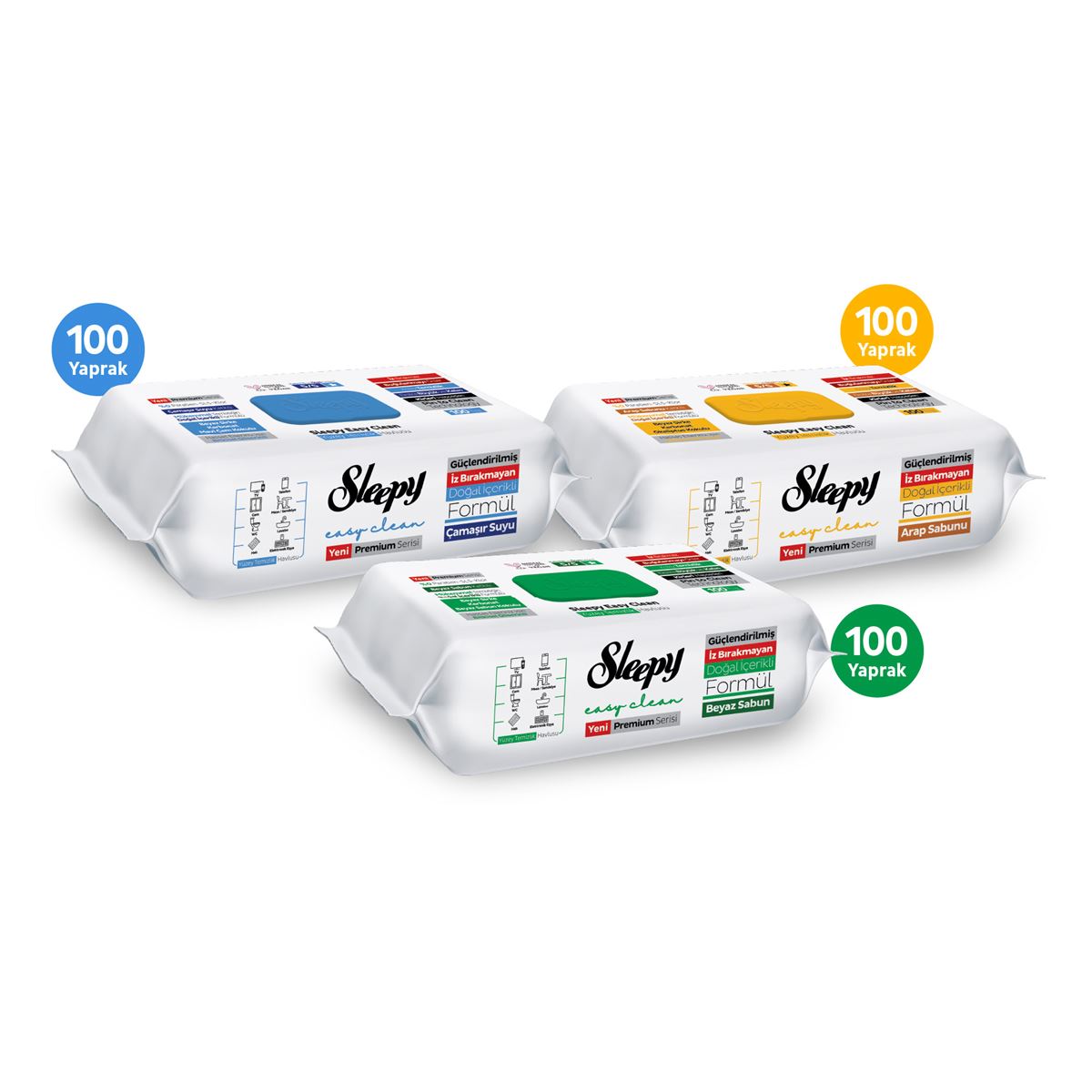 Sleepy Easy Clean Premium Beyaz Sabun Katkılı+Çamaşır Suyu Katkılı+Arap Sabunu Katkılı Yüzey Temizlik Havlusu Mendili 3x100 (300 Yaprak) 300 Yaprak