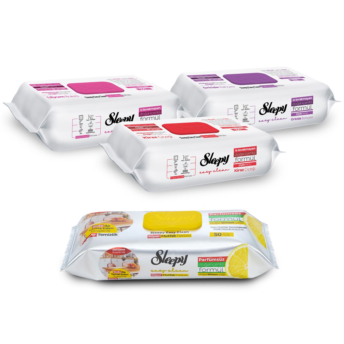 Sleepy Easy Clean Çiçek Serisi&Limon Yağlı Süper Mutfak Yüzey Temizlik Havlusu&Mendili(3x100+50) 350 Yaprak
