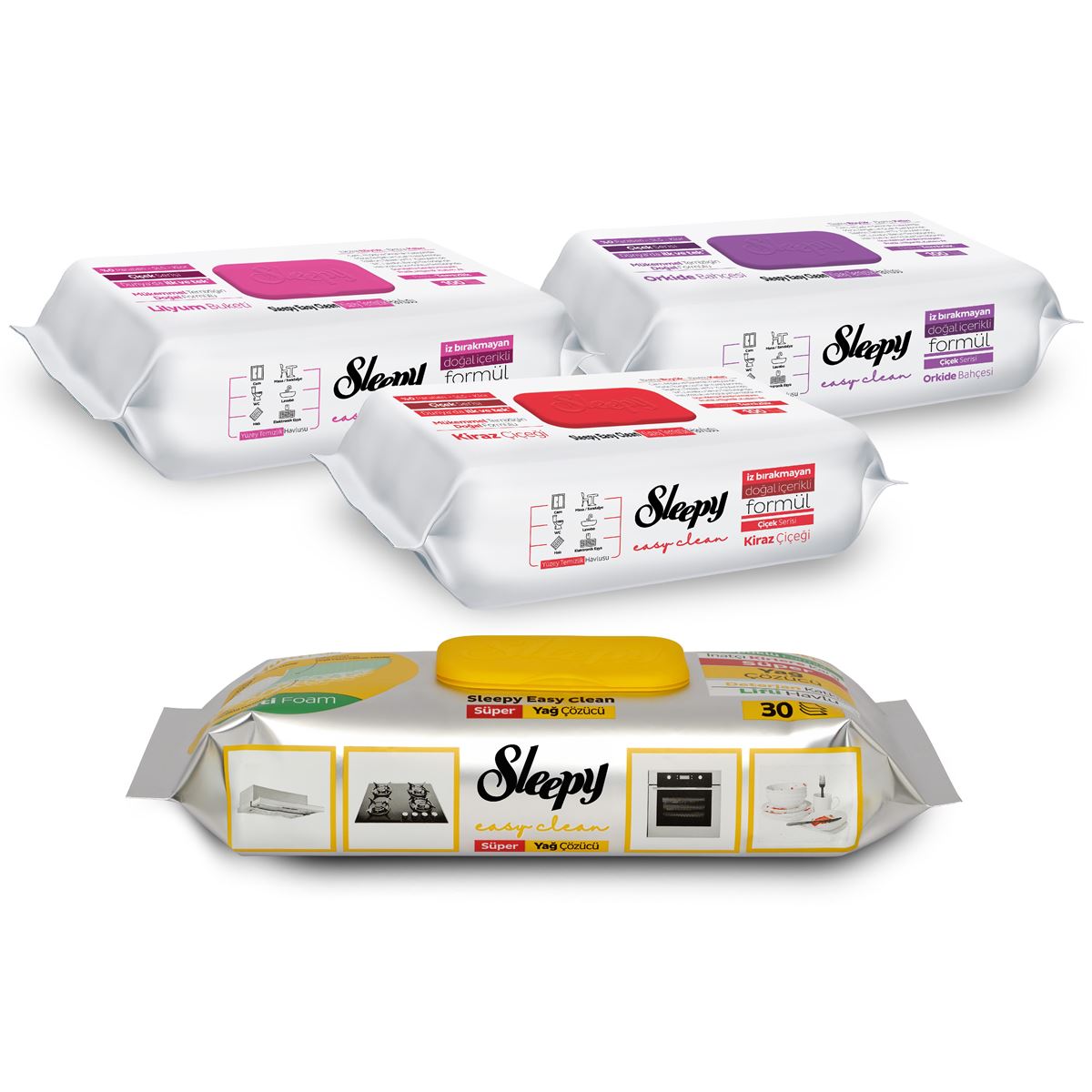 Sleepy Easy Clean Çiçek Serisi&Süper Yağ Çözücü Yüzey Temizlik Havlusu&Mendili(3x100+30) 330 Yaprak