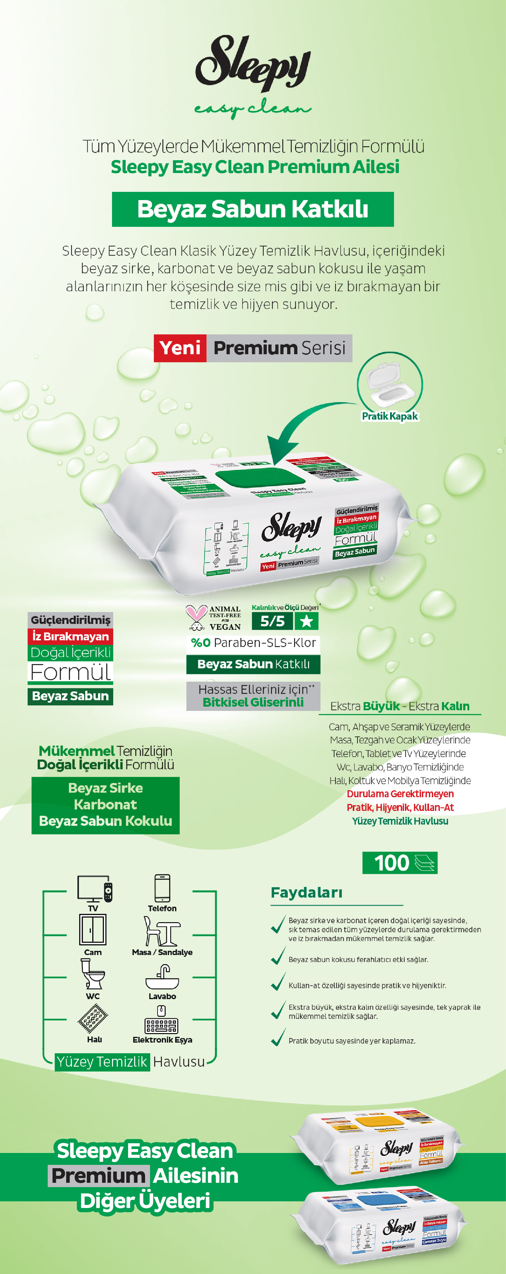 Sleepy Easy Clean Sleepy Easy Clean Beyaz Sabun Katkılı Yüzey Beyaz Sabun Katkılı Yüzey Temizlik Havlusu Mendili 100 Yaprak 100 Yaprak