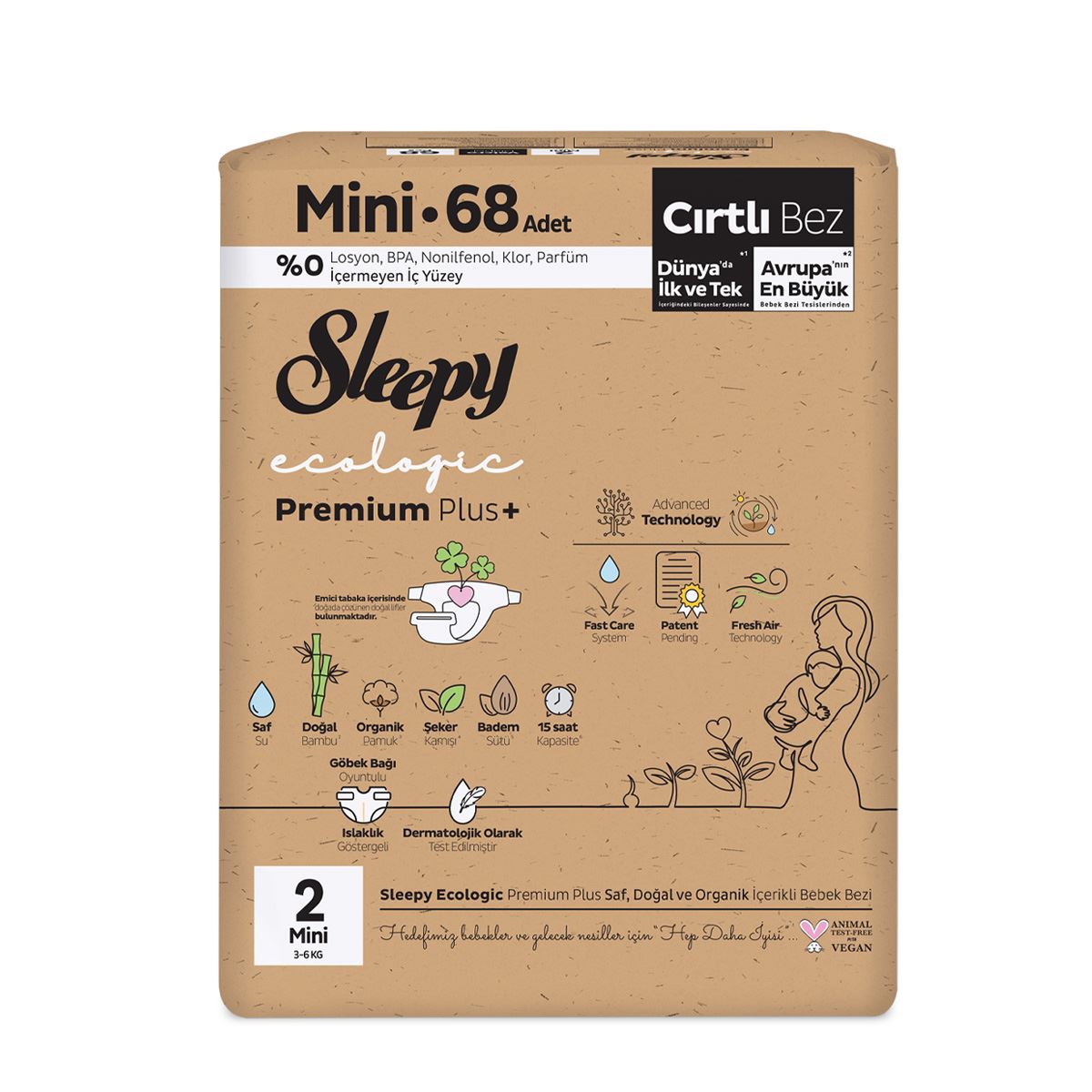 Sleepy Ecologic Premium Plus Ekonomik Paket Bebek Bezi 2 Numara Mini 68 Adet 3-6 Kg