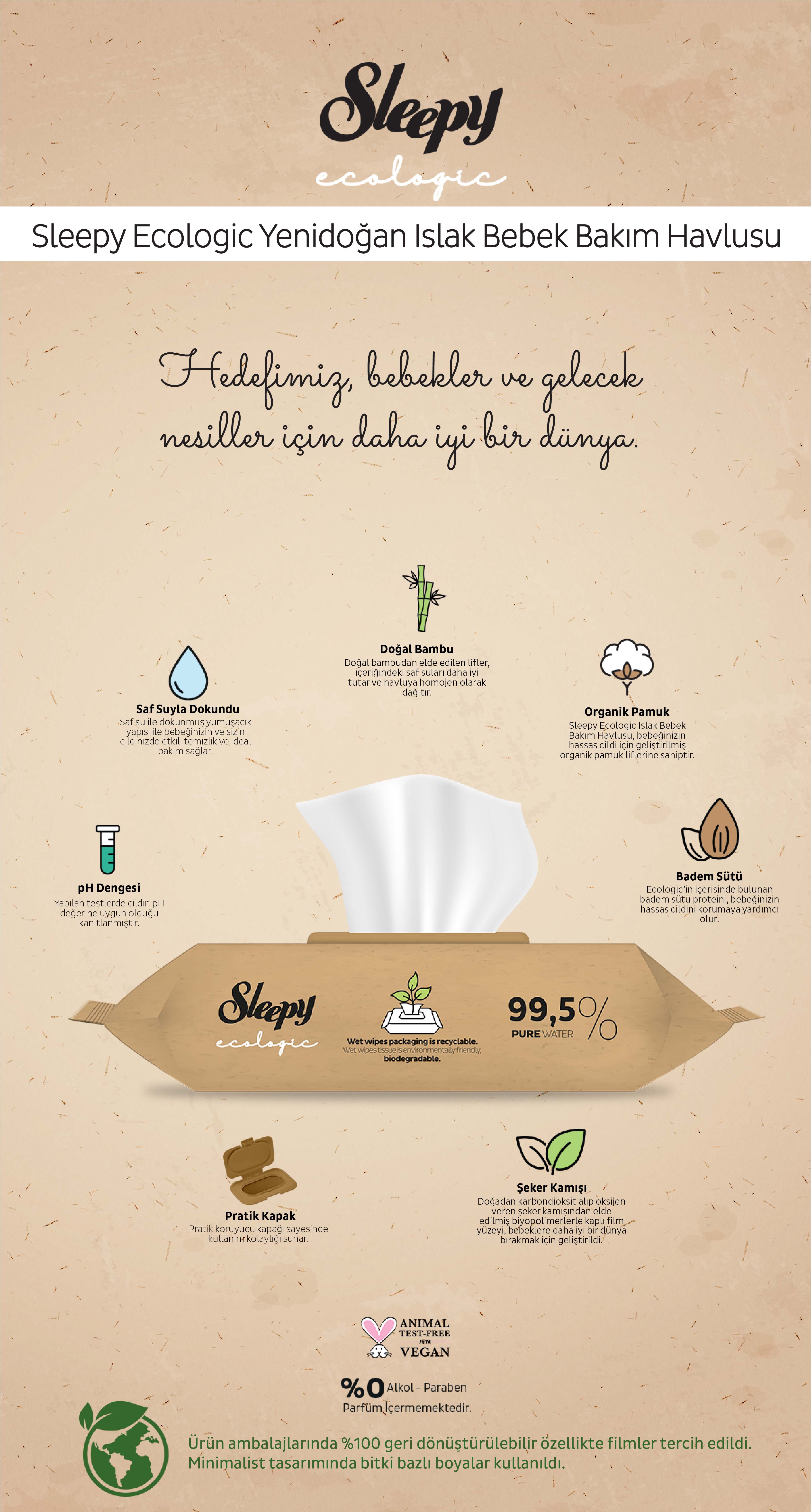 Sleepy Ecologic Yenidoğan Islak Bebek Bakım Havlusu 40 Yaprak 40 yaprak