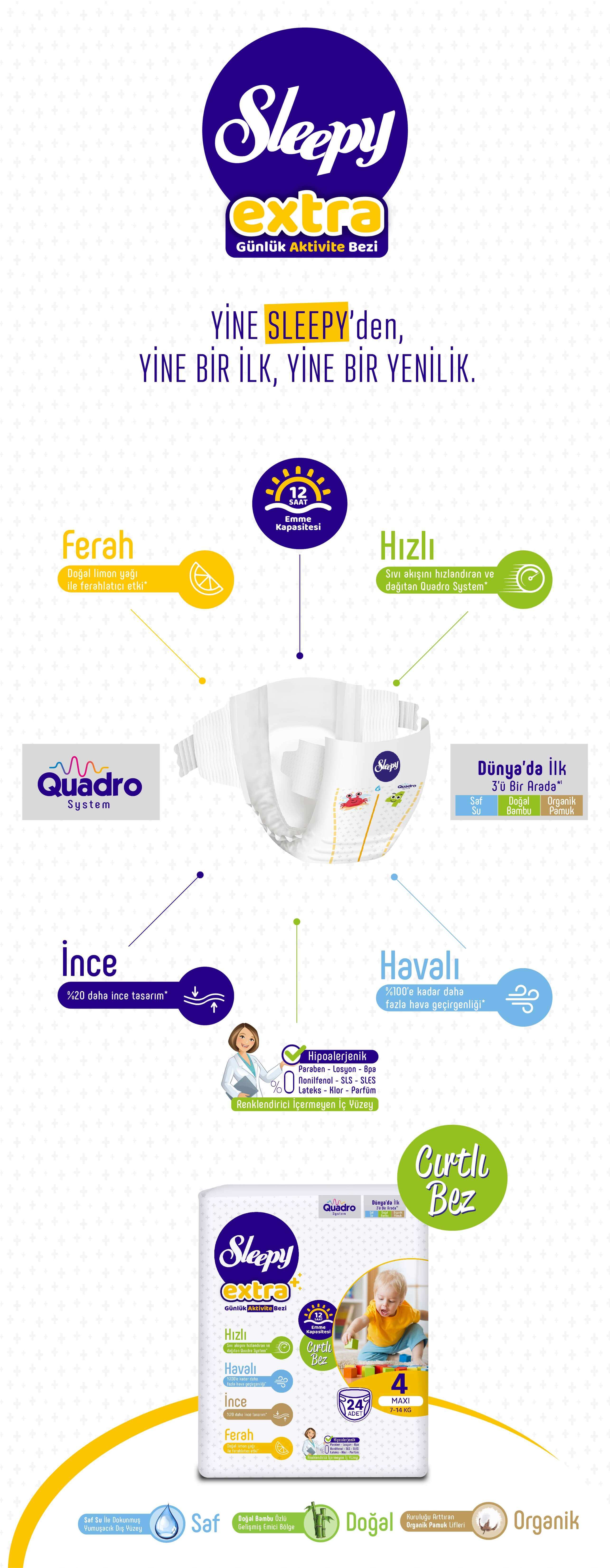 Sleepy Extra Günlük Aktivite Bezi 4 Numara Maxi 24 Adet 7-14 Kg