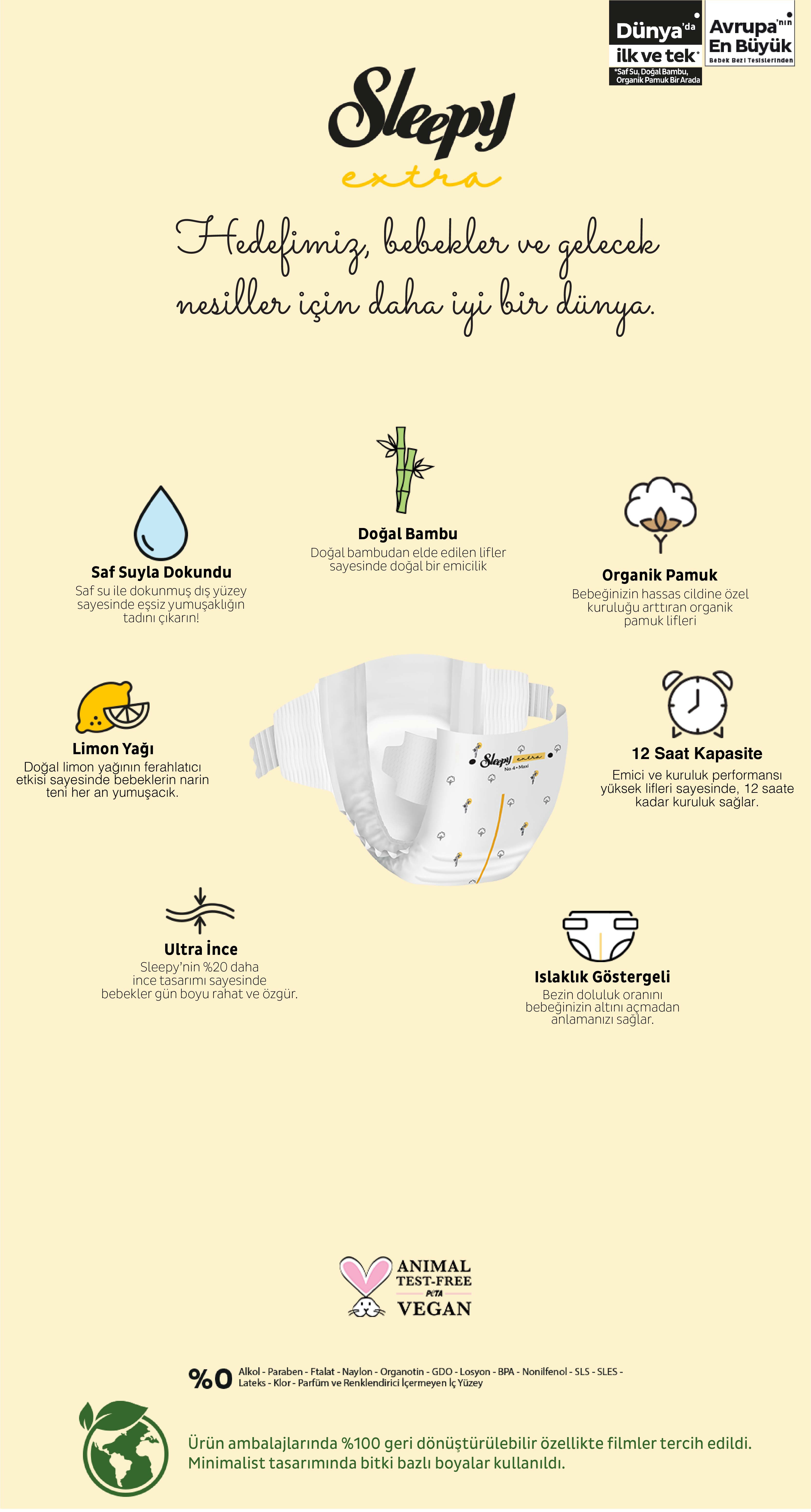 Sleepy Extra Günlük Aktivite Ekonomik Paket Bebek Bezi 3 Numara Midi 56 Adet 4-9 Kg