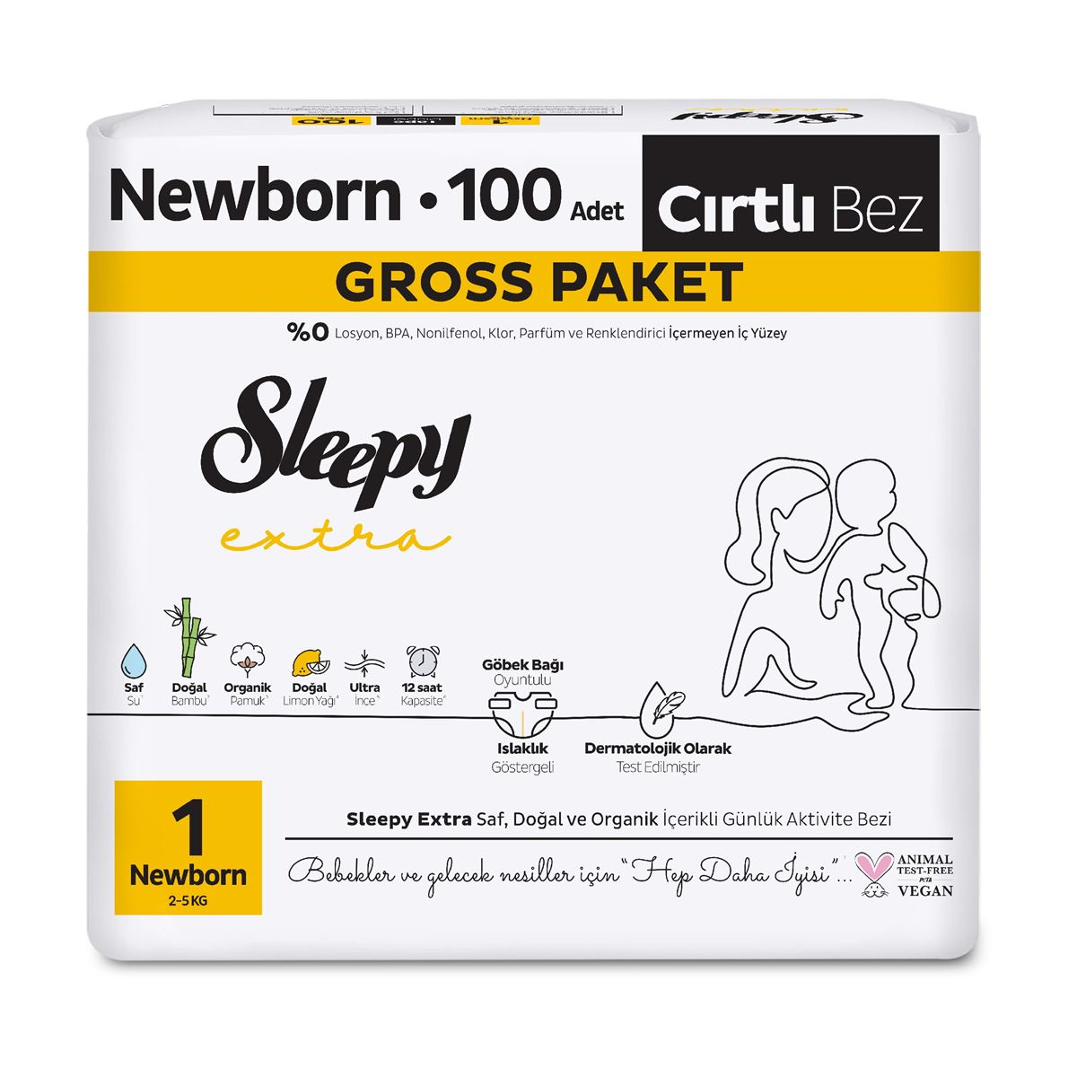 Sleepy Extra Günlük Aktivite Gross Paket Bebek Bezi 1 Numara Newborn 100 Adet 2-5 Kg
