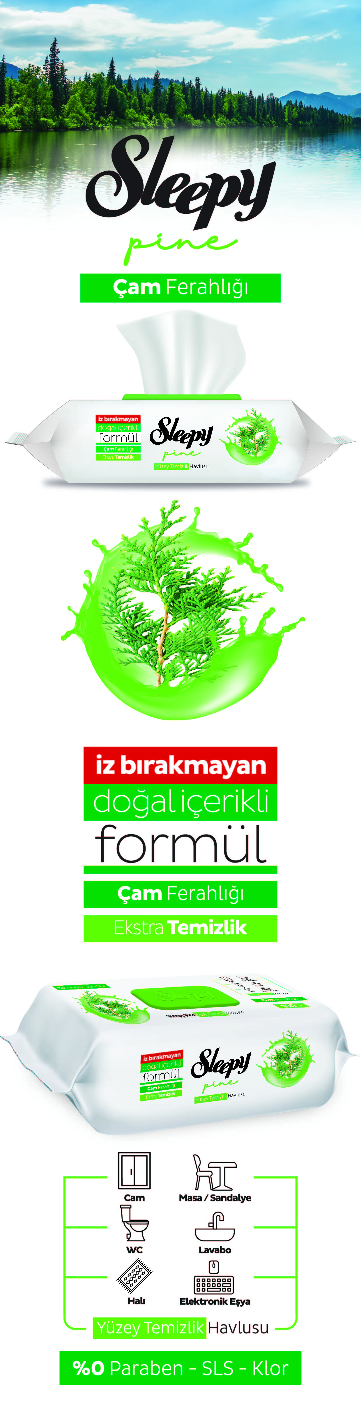 Sleepy Pine Yüzey Temizlik Havlusu&Mendili Çam Ferahlığı 12x100 (1200 Yaprak) 1200 Yaprak